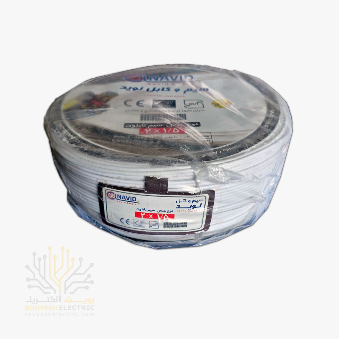 سیم برق نایلون نمره 2x1/5 برند نوید استاندارد حلقه 30 متری
