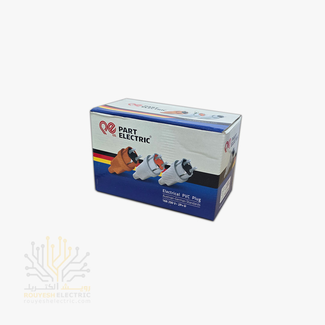 دوشاخه صنعتی برق برند پارت الکتریک بدنه لاستیکی استاندارد رنگ طوسی