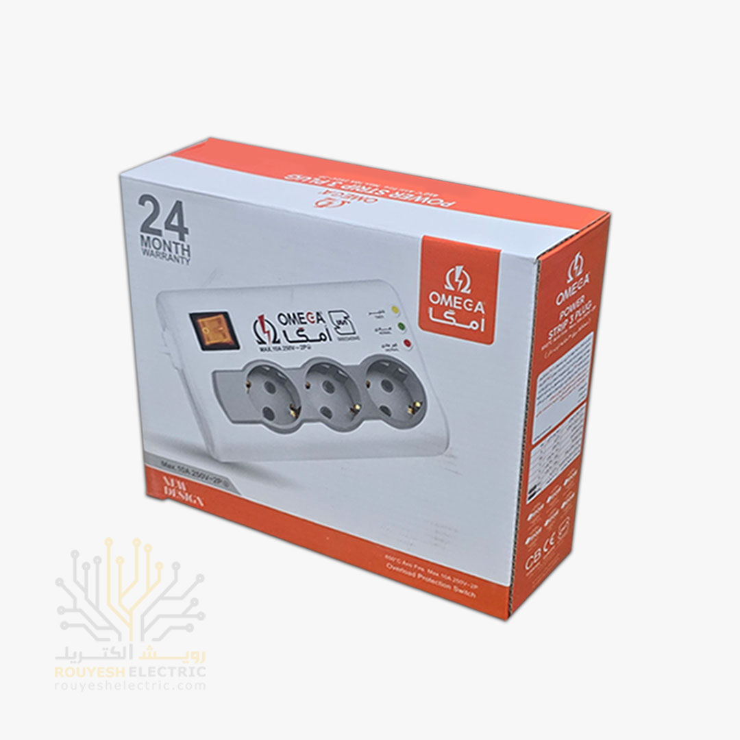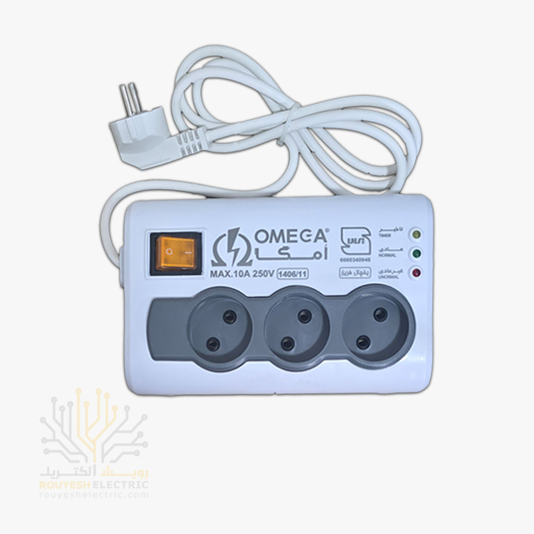 محافظ برق یخچال سیار سه خانه برند امگا مدل p3100 استاندار بدون ارت کلید دار 1/5 متری