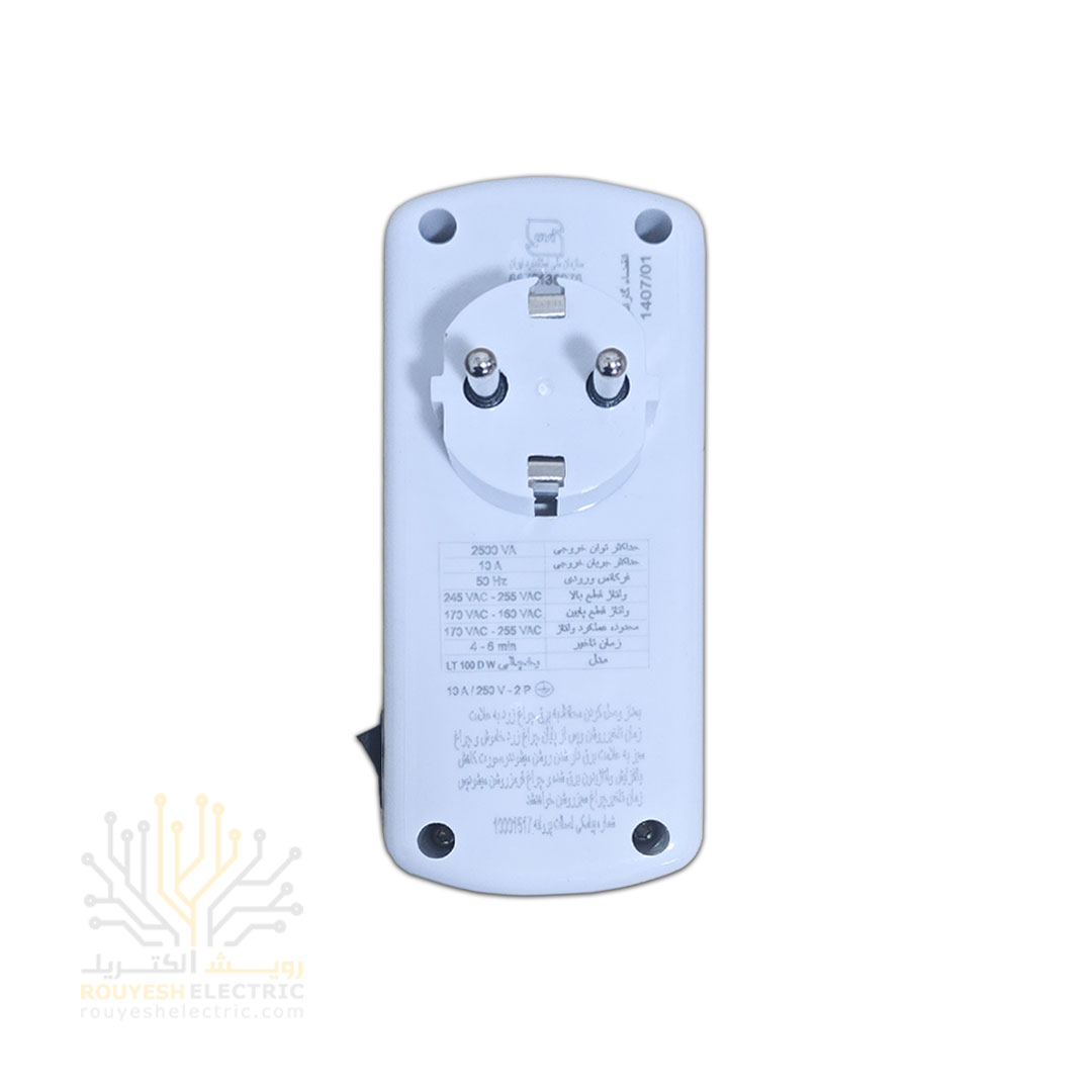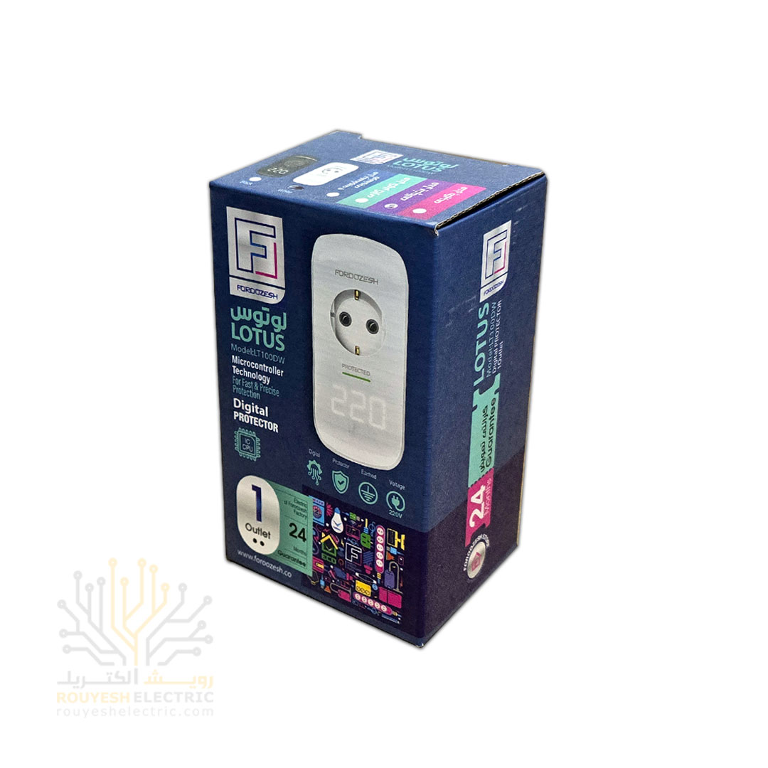 محافظ برق یخچال دیواری تک خانه برند فروزش مدل LT100DW لوتوس ارتدار کلید دار بدنه سفید دیجیتال