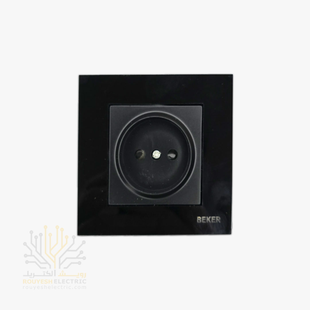پریز برق ساده توکار برند بکر با مغزی سرامیکی مدل گلس مشکی