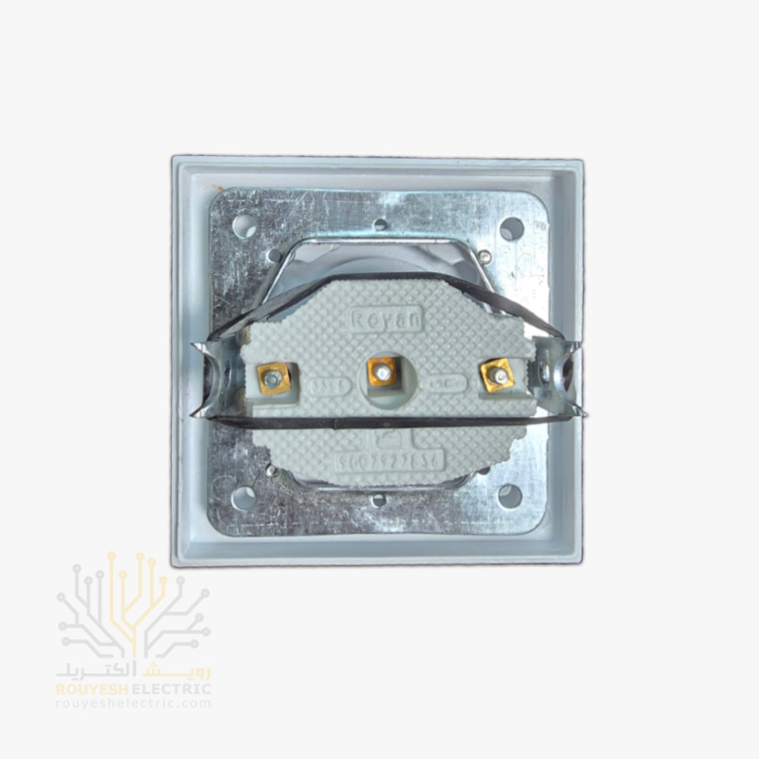 • پوشش خارجی سفید: قسمت بیرونی ساخته شده از پلاستیک مقاوم با رنگ سفید، که ظاهر نهایی پریز را تکمیل می‌کند و با دیوارهای داخلی همخوانی دارد.