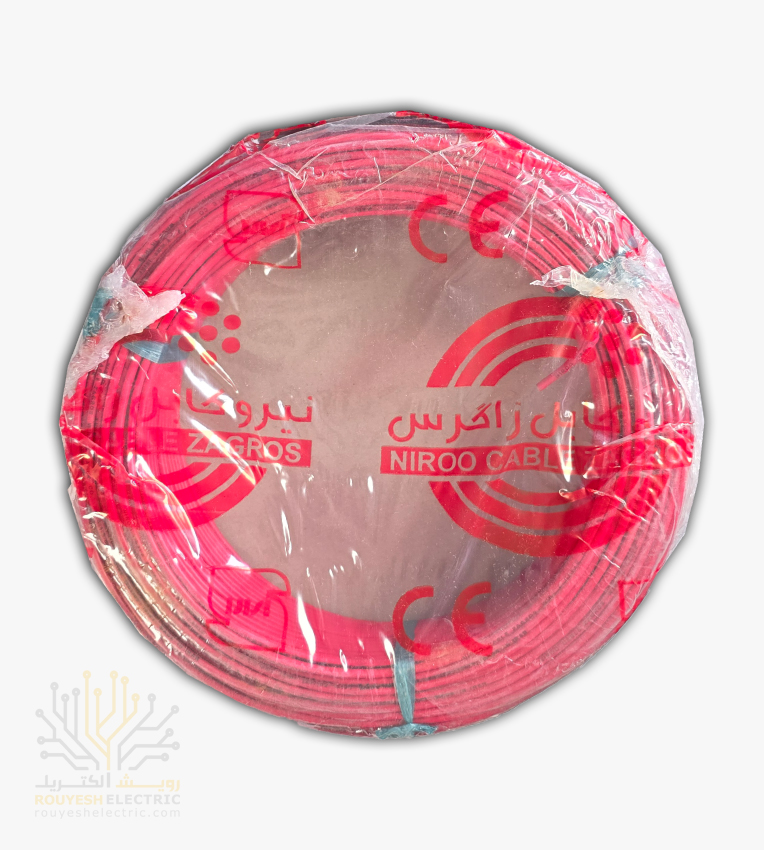 سیم برق نمره 1x1/5 برند نیرو کابل زاگرس استاندارد حلقه 100 متری رنگ قرمز