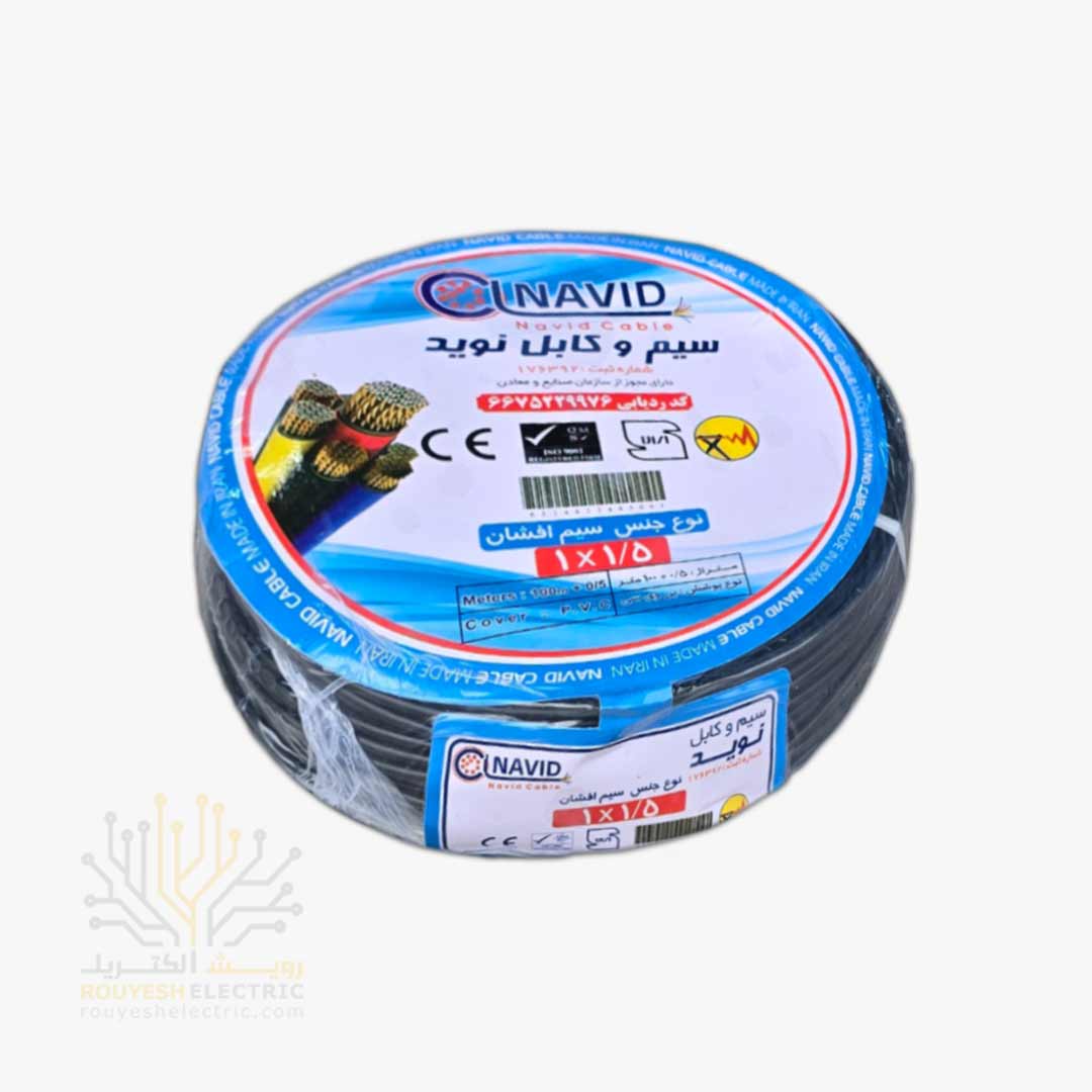 سیم برق نمره 1x1/5 برند نوید استاندارد حلقه 100 متری رنگ مشکی