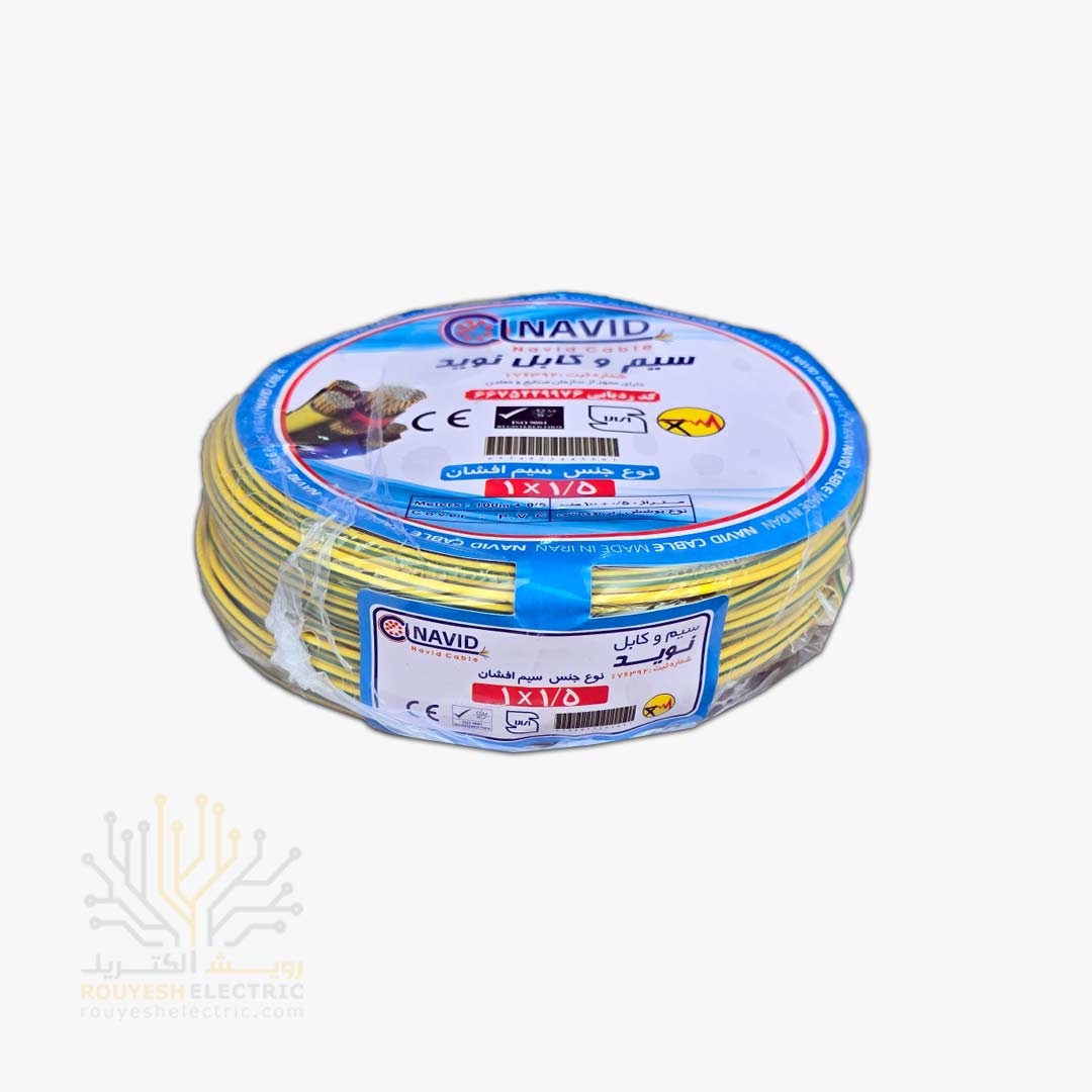 سیم برق نمره 1x1/5 برند نوید استاندارد حلقه 100 متری رنگ ارت