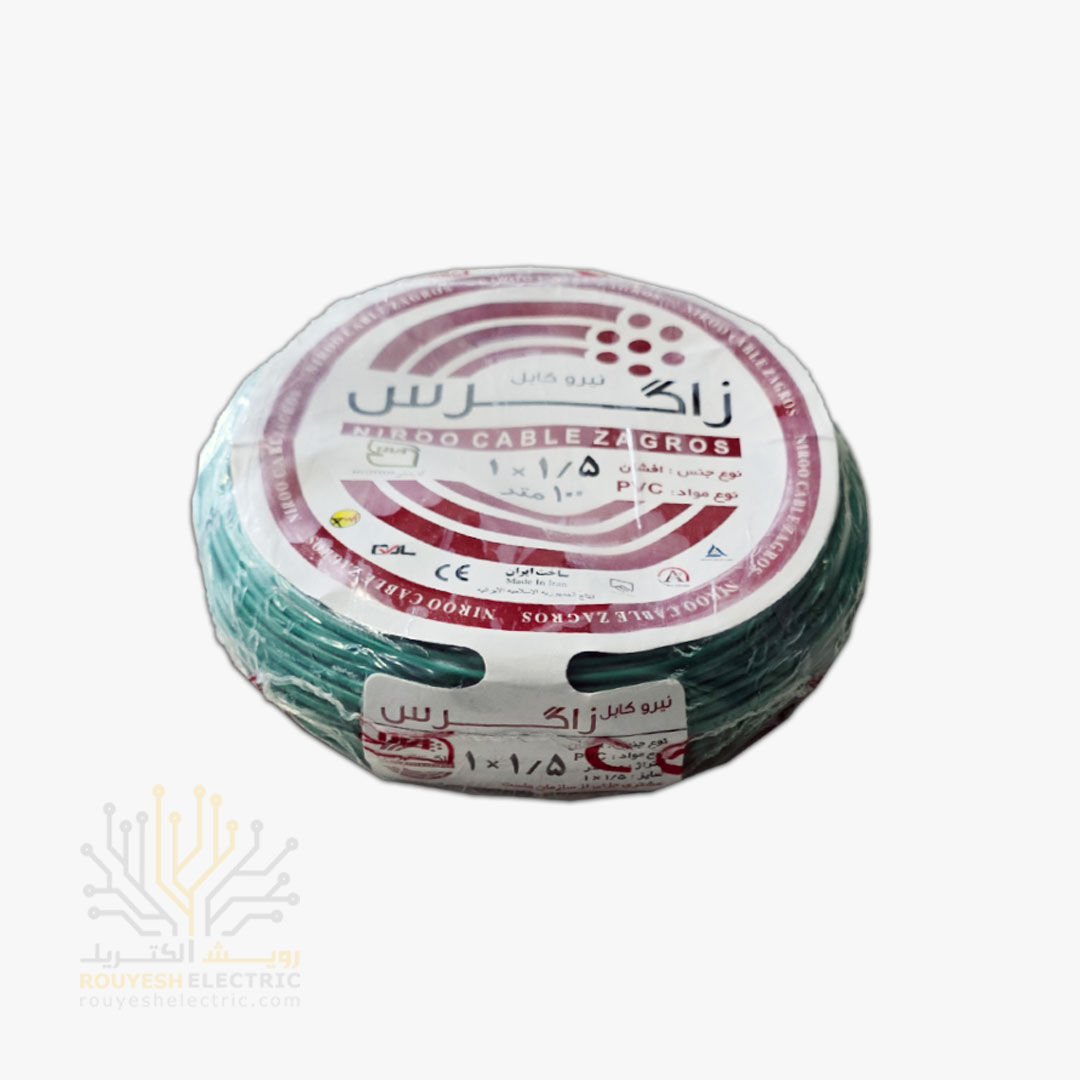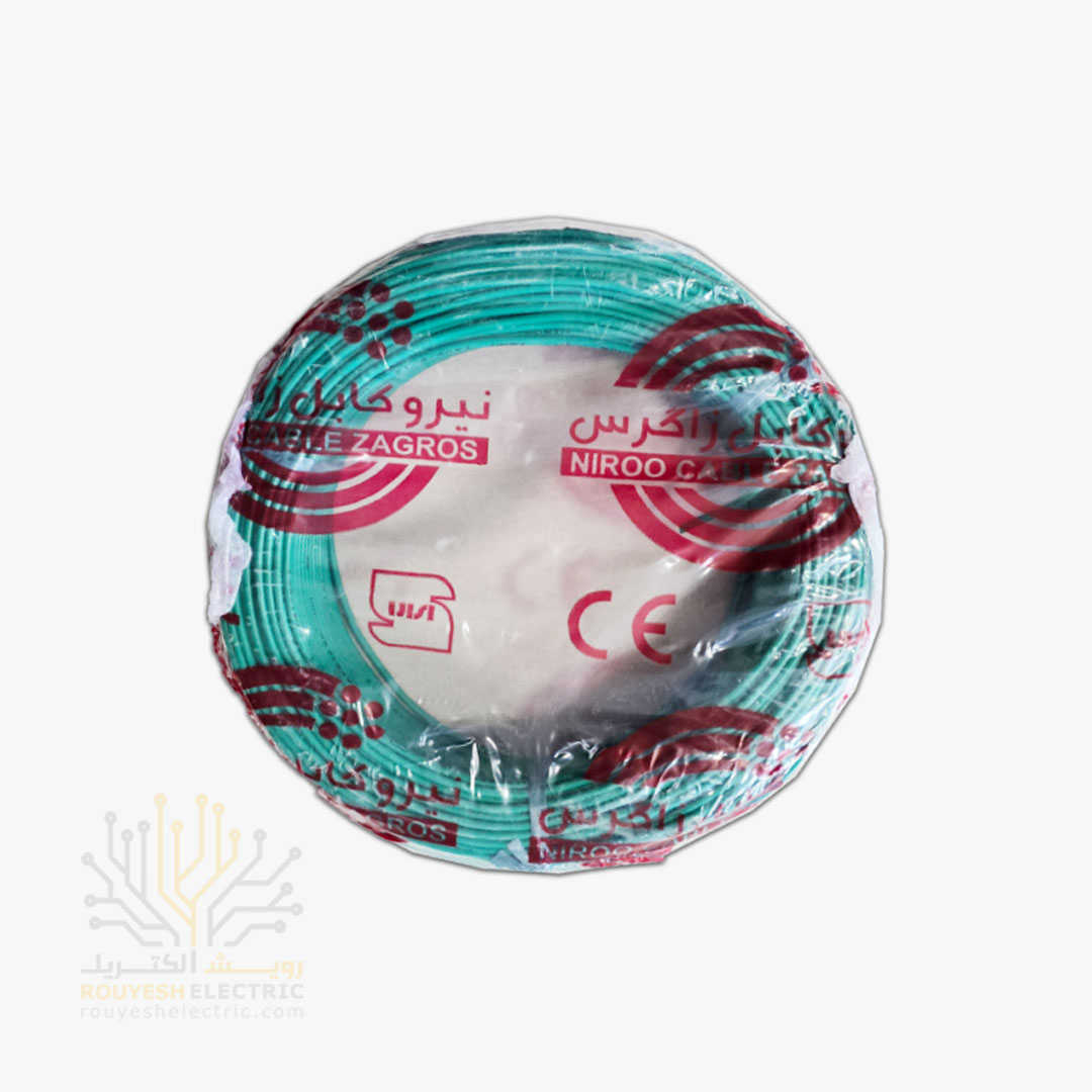 سیم برق نمره 1x1/5 برند پارس الکتریک استاندارد حلقه 100 متری رنگ سبز