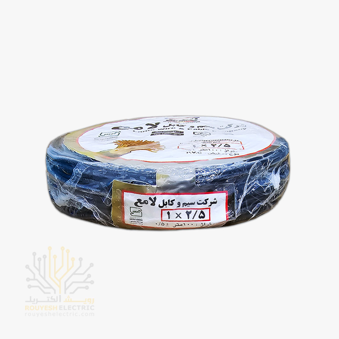 سیم برق نمره 1x2/5 برند لامع استاندارد رنگ مشکی حلقه 100 متری