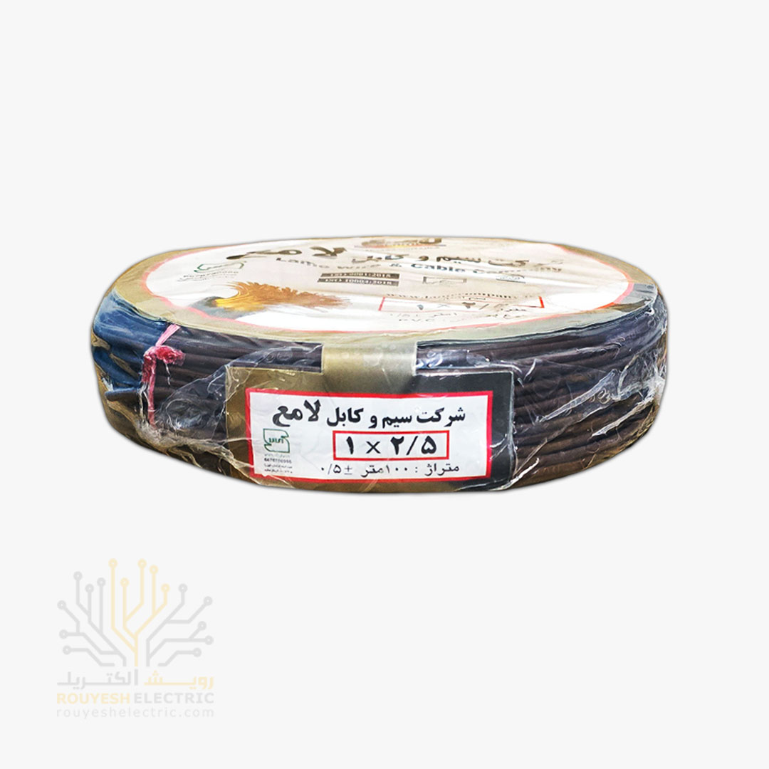 سیم برق نمره 1x2/5 برند لامع استاندارد رنگ قهوه ای حلقه 100 متری