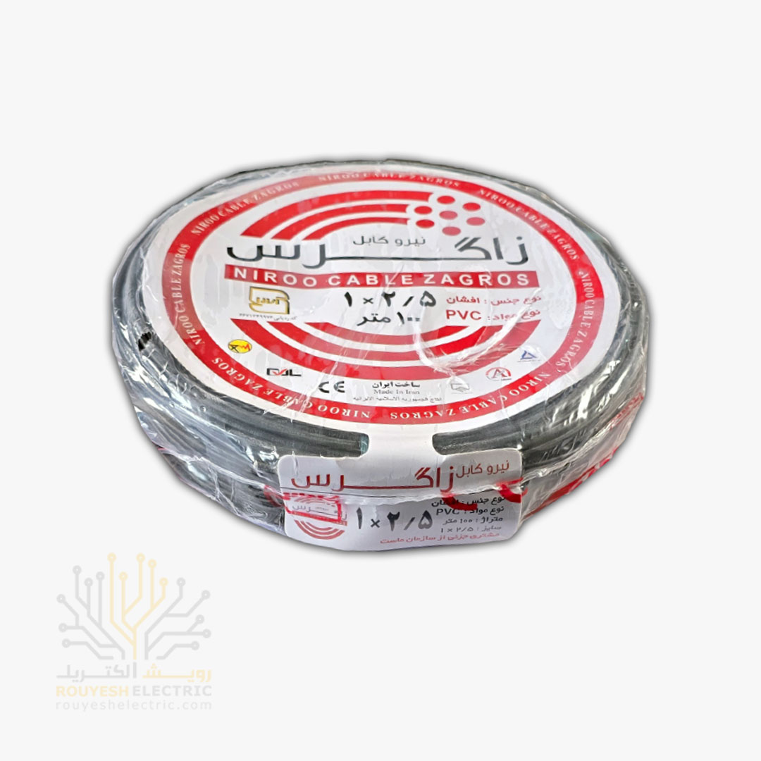 سیم برق نمره 1x2/5 برند نیرو کابل زاگرس استاندارد حلقه 100 متری رنگ مشکی