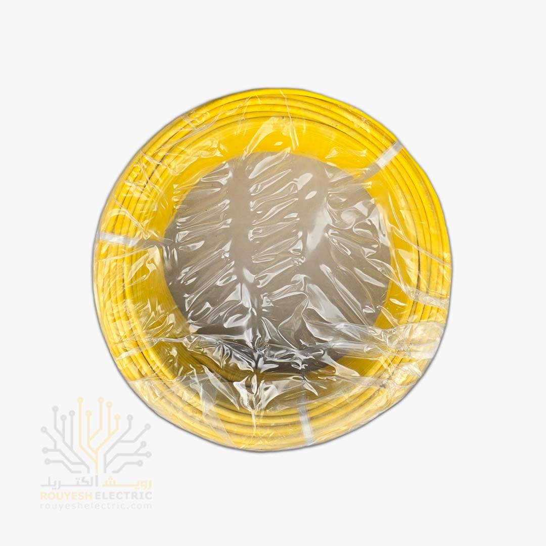 سیم برق نمره 1x4 برند نوید استاندارد حلقه 100 متری رنگ زرد