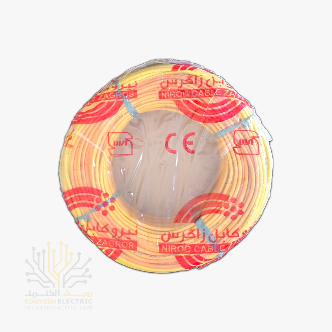 سیم برق نمره 1x4 برند نیرو کابل زاگرس استاندارد حلقه 100 متری رنگ زرد