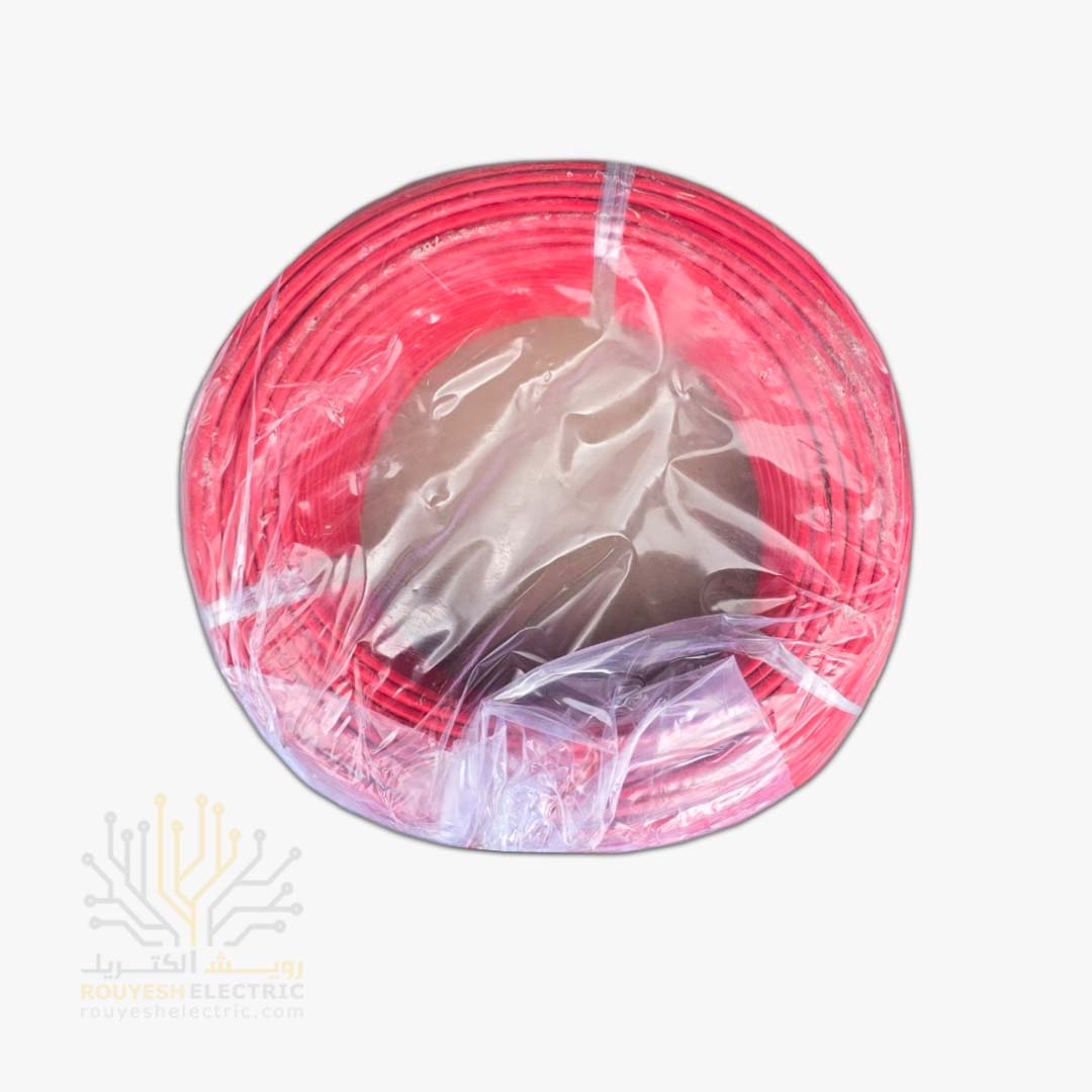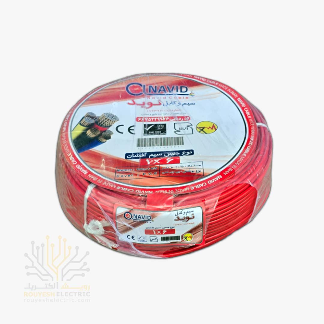 سیم برق نمره 1x6 برند نوید استاندارد حلقه 100 متری رنگ قرمز