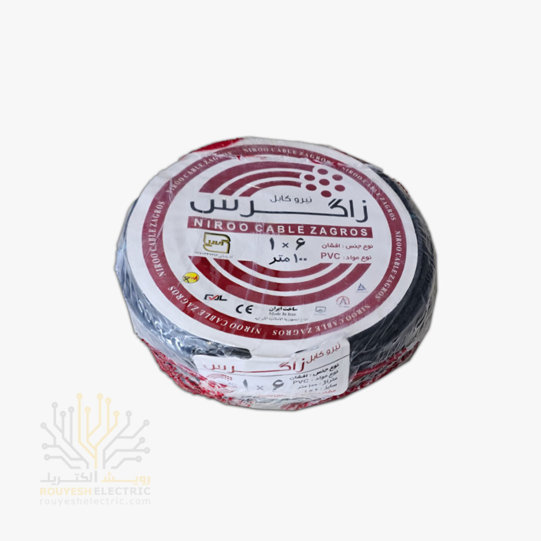 سیم برق نمره 1x6 برند نیرو کابل زاگرس استاندارد حلقه 100 متری رنگ مشکی