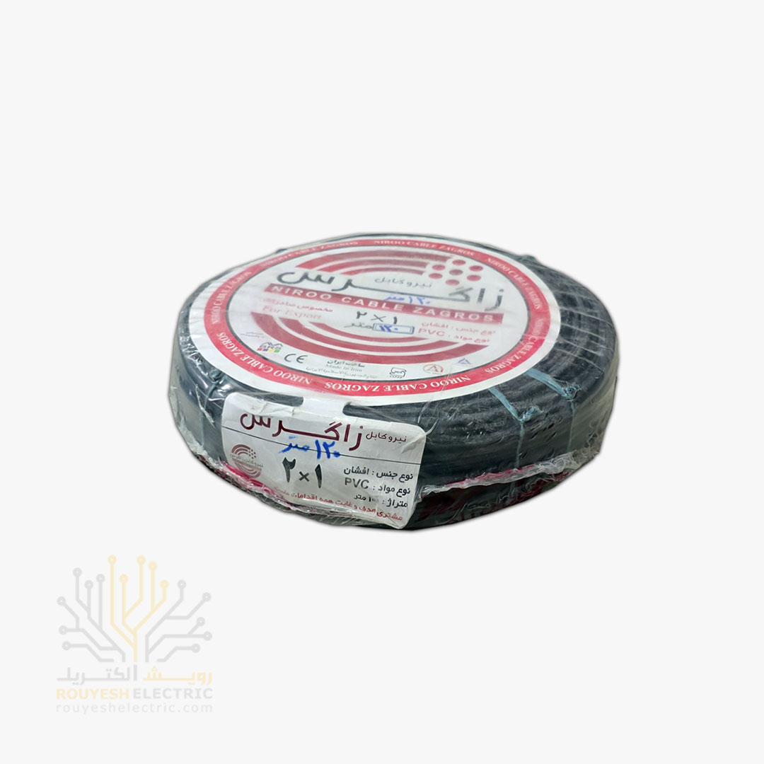 کابل برق نمره 2x1 برند نیروکابل زاگرس استاندارد 120 متری