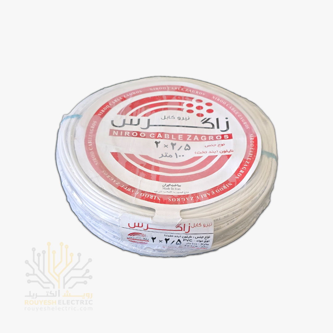 سیم برق نایلون نمره 2x2/5 برند نیرو کابل زاگرس حلقه 100 متری