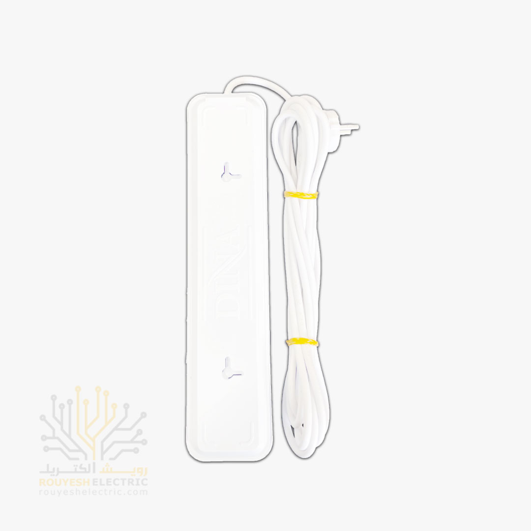چهار راهی برق سیار برند دینا بدنه سفید مبدل دار مغز کابل مس 4 متری