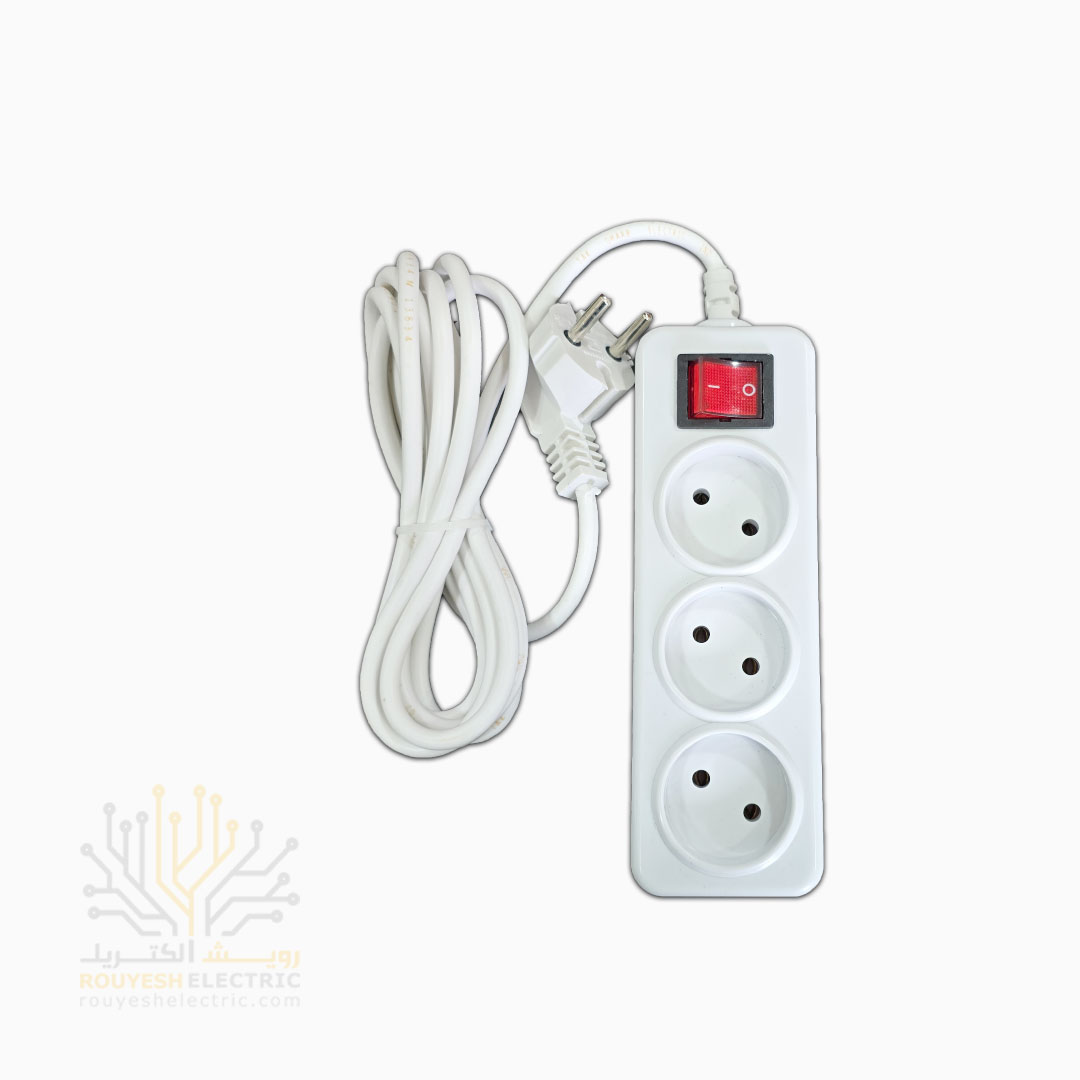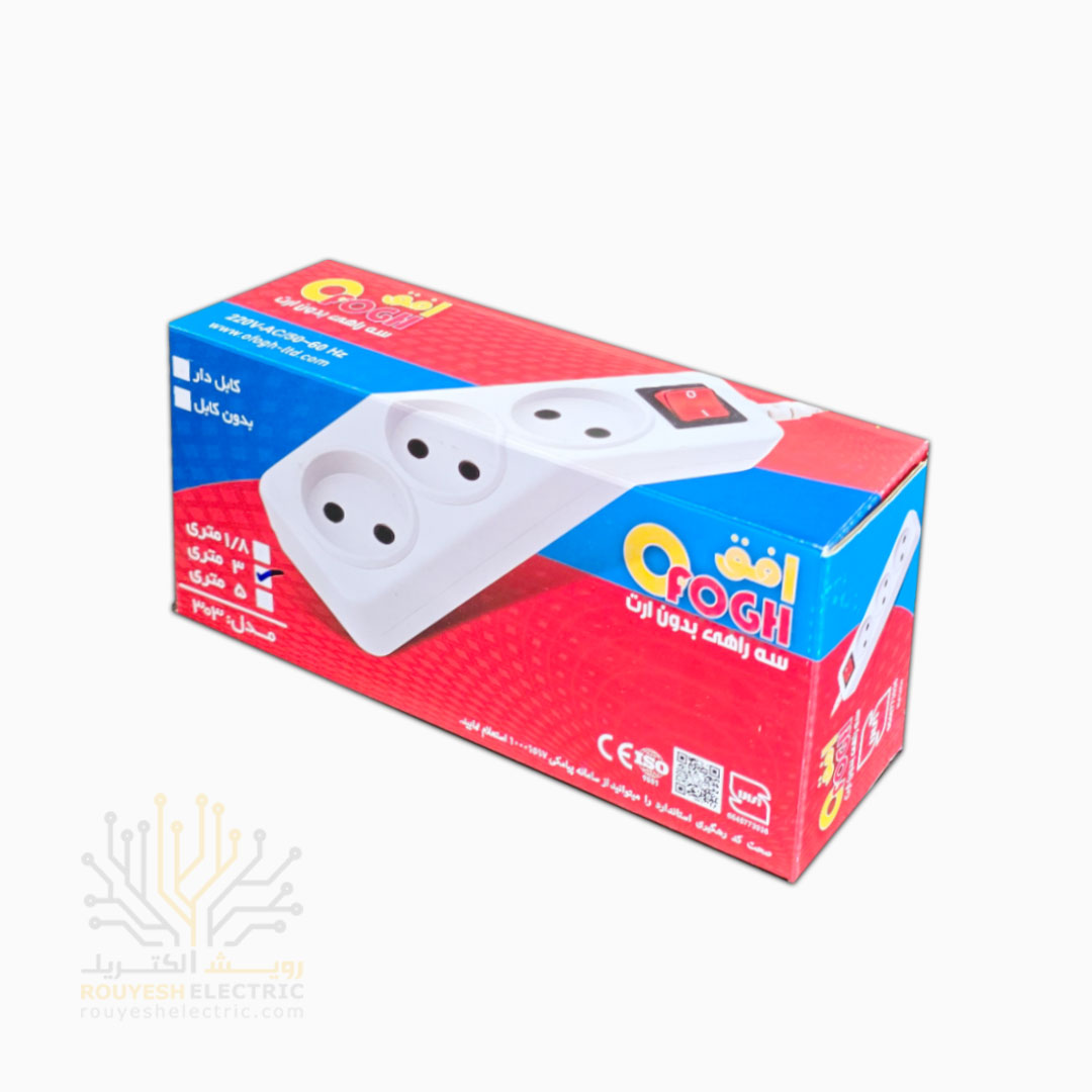 سه راهی برق سیار برند افق مدل 303 استاندارد کلید دار کابل 3 متری