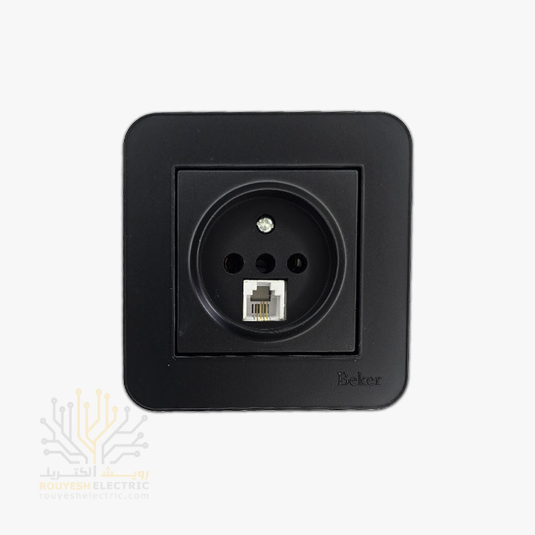 پریز تلفن دوکاره توکار برند بکر مدل آتا مشکی