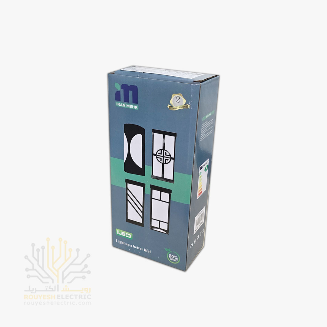 چراغ دیواری دکوراتیو 20 وات برند ایران مهر کد ایران 10.1 بدنه مشکی نور مهتابی
