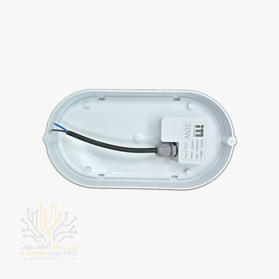 چراغ دیواری ال ای دی 20 وات برند ایران مهر ضد آب مدل بیضی نور مهتابی
