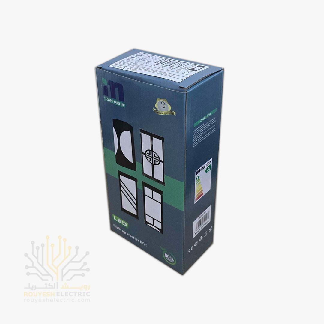 چراغ دیواری دکوراتیو 20 وات برند ایران مهر کد ایران 9.1 بدنه مشکی نور مهتابی 6 ماه گارانتی