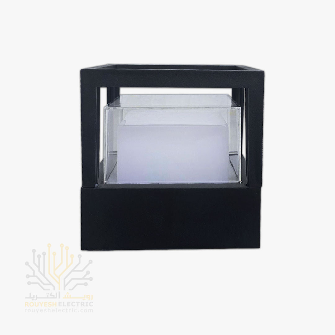 چراغ دیواری دکوراتیو 6 وات برند ایران مهر مدل مکعب یک طرفه کد ایران 21 بدنه مشکی نور نچرال