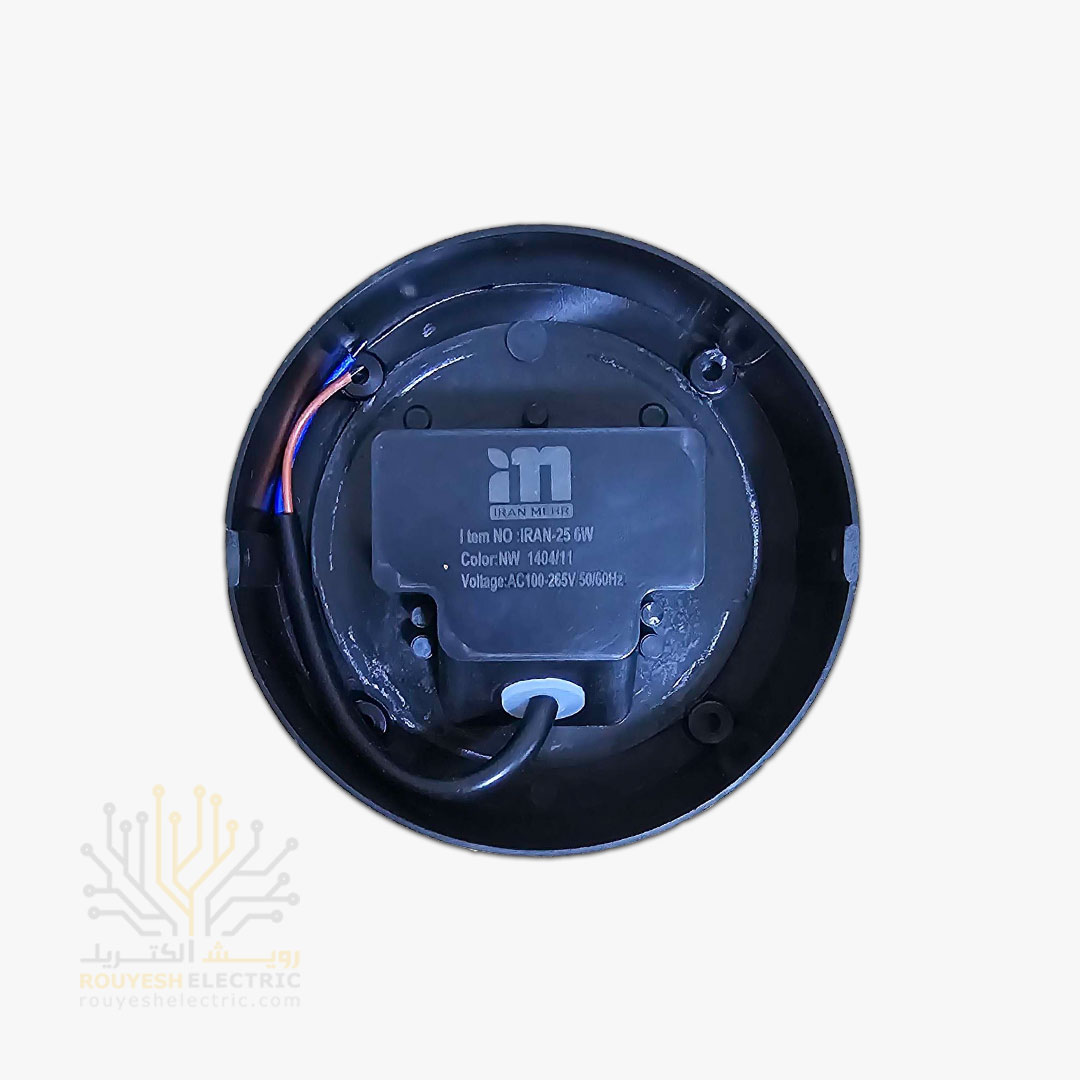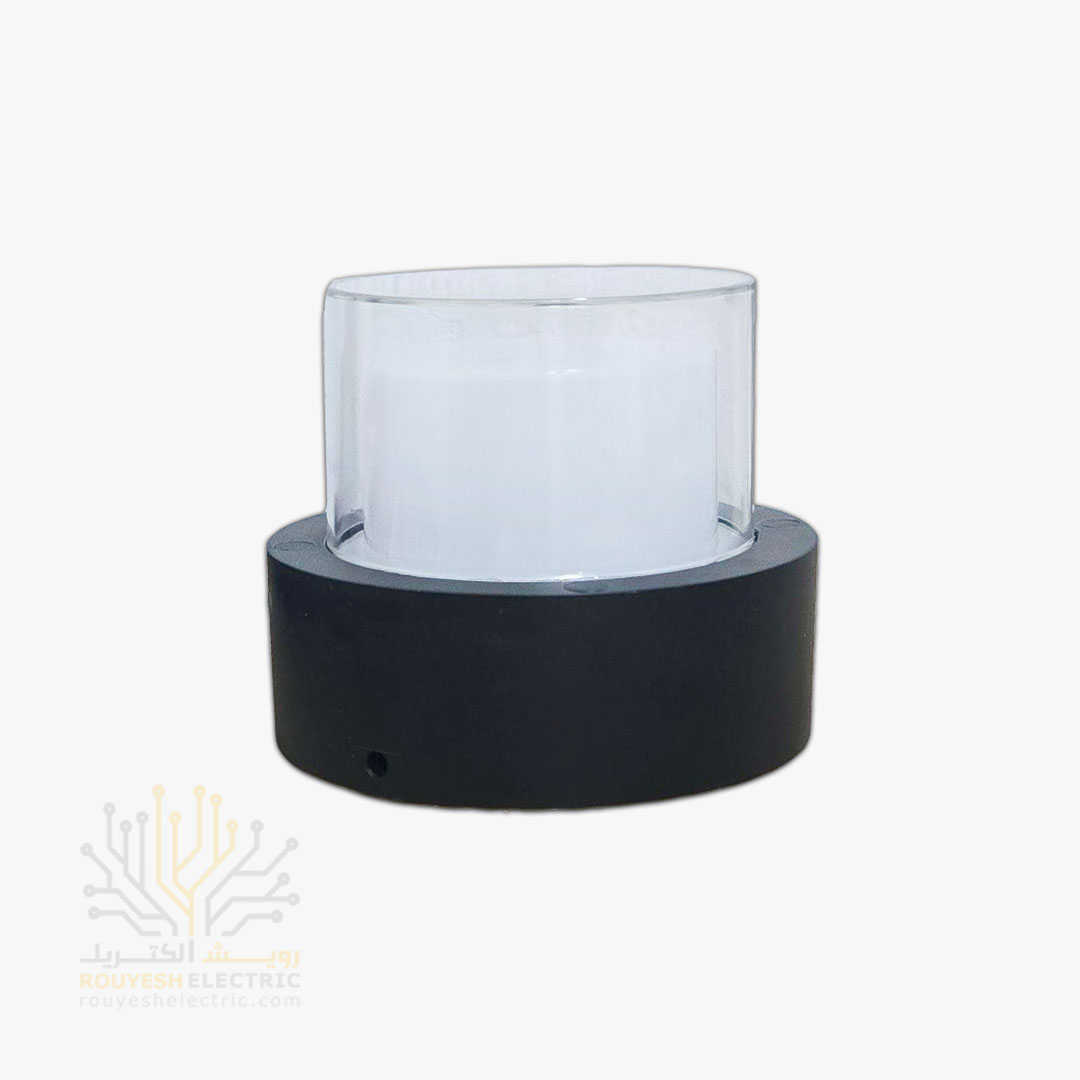 چراغ دیواری دکوراتیو 6 وات برند ایران مهر مدل استوانه یک طرفه کد ایران 25 بدنه مشکی نور آفتابی 6 ماه گارانتی