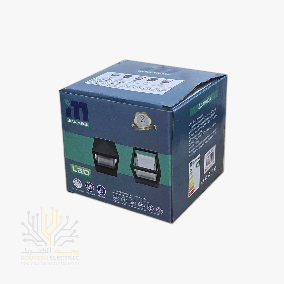 چراغ دیواری دکوراتیو 20 وات برند ایران مهر کد ایران 10.2 بدنه مشکی نور مهتابی